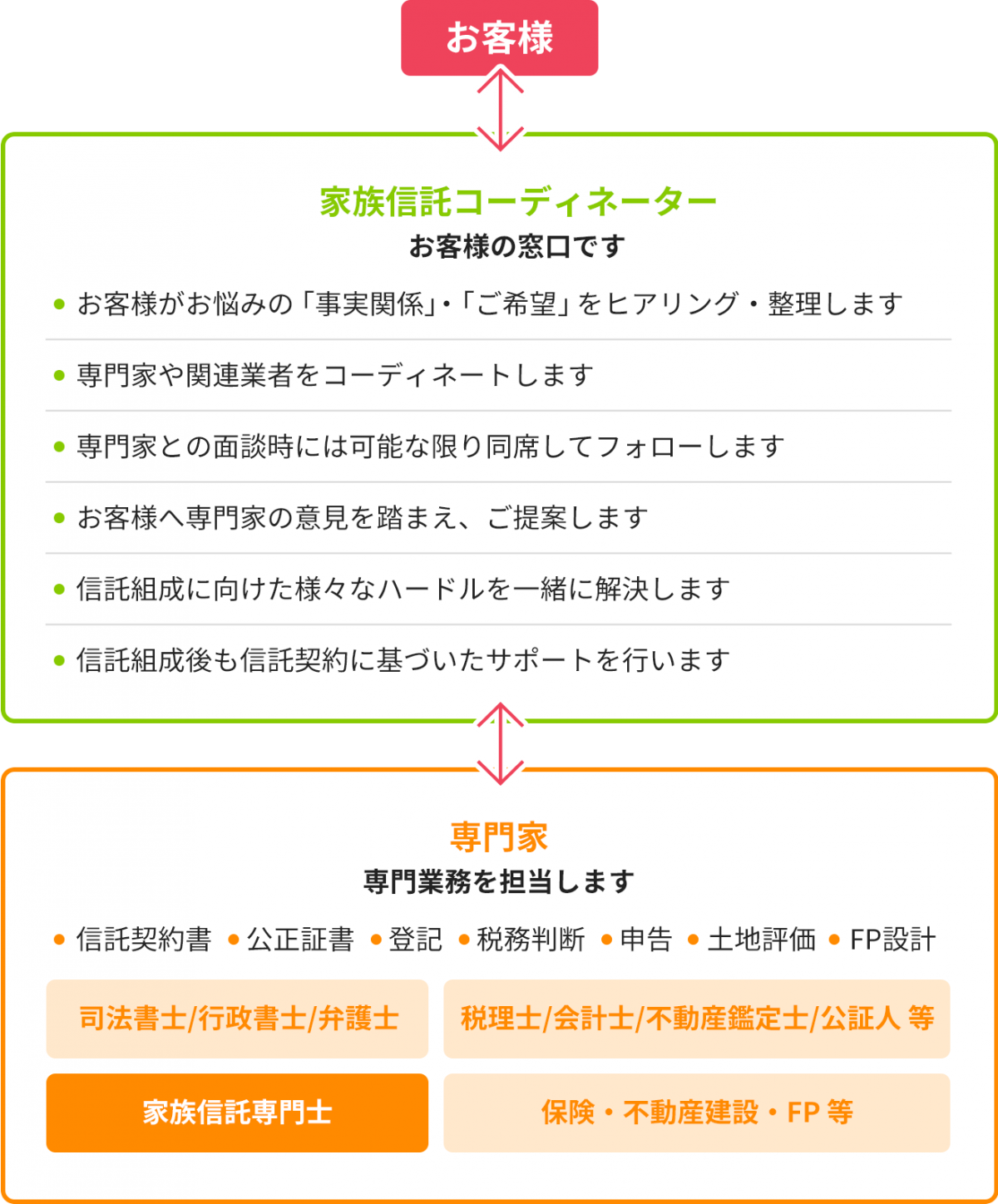 - 信託組成後も信託内容が適切に履行されるよう、サポートを行います